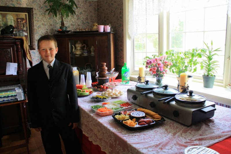 At the end of the year and right before she moves, sister Pope put together a recital where the boys got to play the most complicated piece they have learned so far. Nephi played the simplified version of "There is a Green Hill Far Away", Isaiah played a piece from the opera "Carmen" and Samuel played a piece from "The Barber of Seville". The event was held at our friends' the Krauss's house. It was a grand event. Their house is beautiful and their hospitality superb.